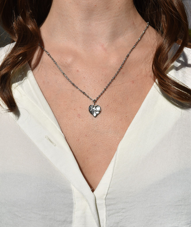 Symbole de résilience et de force intérieure, le coeur martelé représente les épreuves traversées et la lumière qu'on en tire.