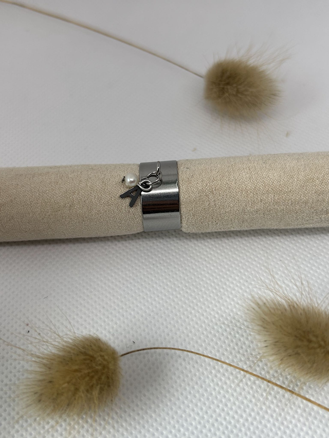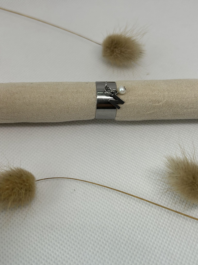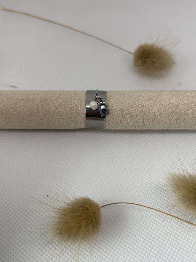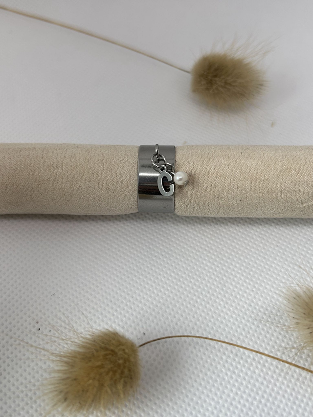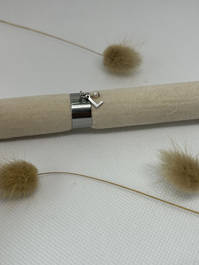 Bague breloque initiale en acier inoxydable